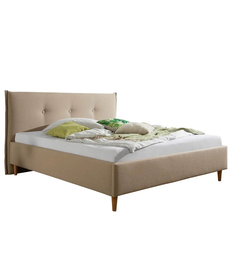 Sevilla - Cama matrimonial estilo moderno en tela color beige