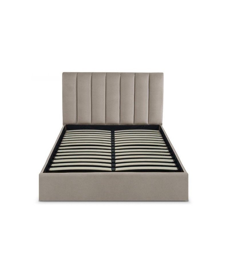 Sonia - Cama queen estilo moderno con almacenamiento en terciopelo color beige
