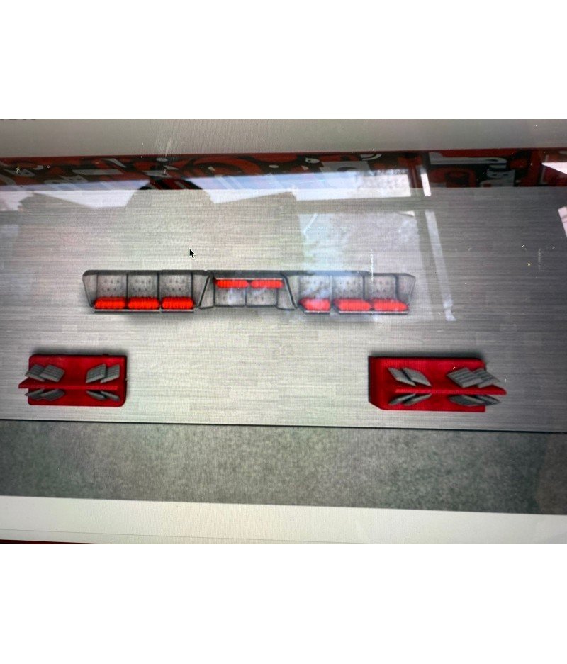 3 sillones de 3 asientos cada uno de 70cm, 9 plazas en total, tela curri gris oscuro con respaldo en tela curri color rojo